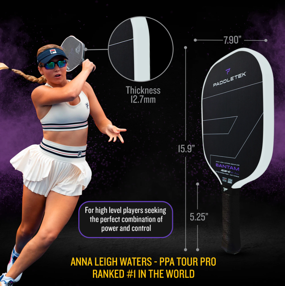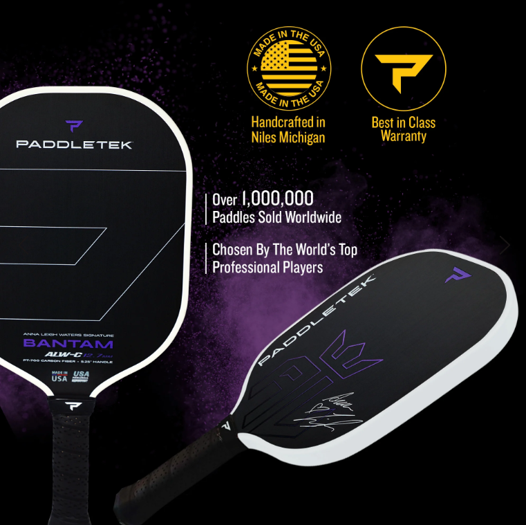 Upgrade your game with the Paddletek Bantam ALW-C 12.7mm Pickleball Paddle available in multiple colors. Featuring a sleek design, responsive polymer core, and textured fiberglass face, this paddle delivers power, control, and spin.