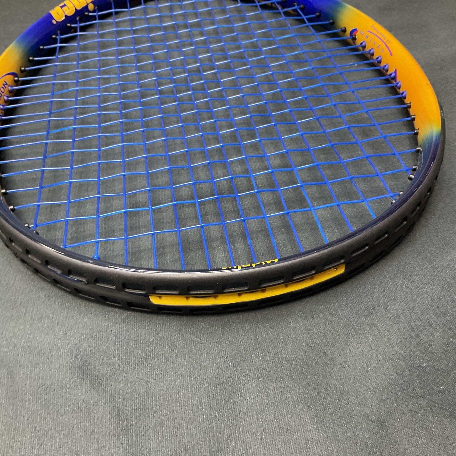 Racquet is New and never hit with. Grip and string has been replaced. Strung with Wilson Sensation 16g#54.
