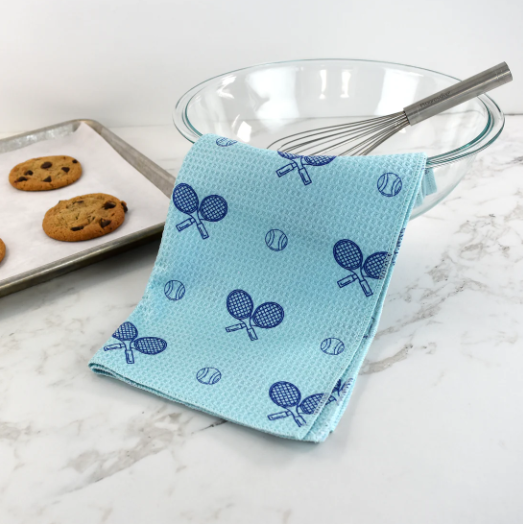 The Racquet Inc. Tennis Dish Towel in Clear Skies Blue is both practical and stylish, making it a great addition to your kitchen or a thoughtful gift for the tennis enthusiast in your life.