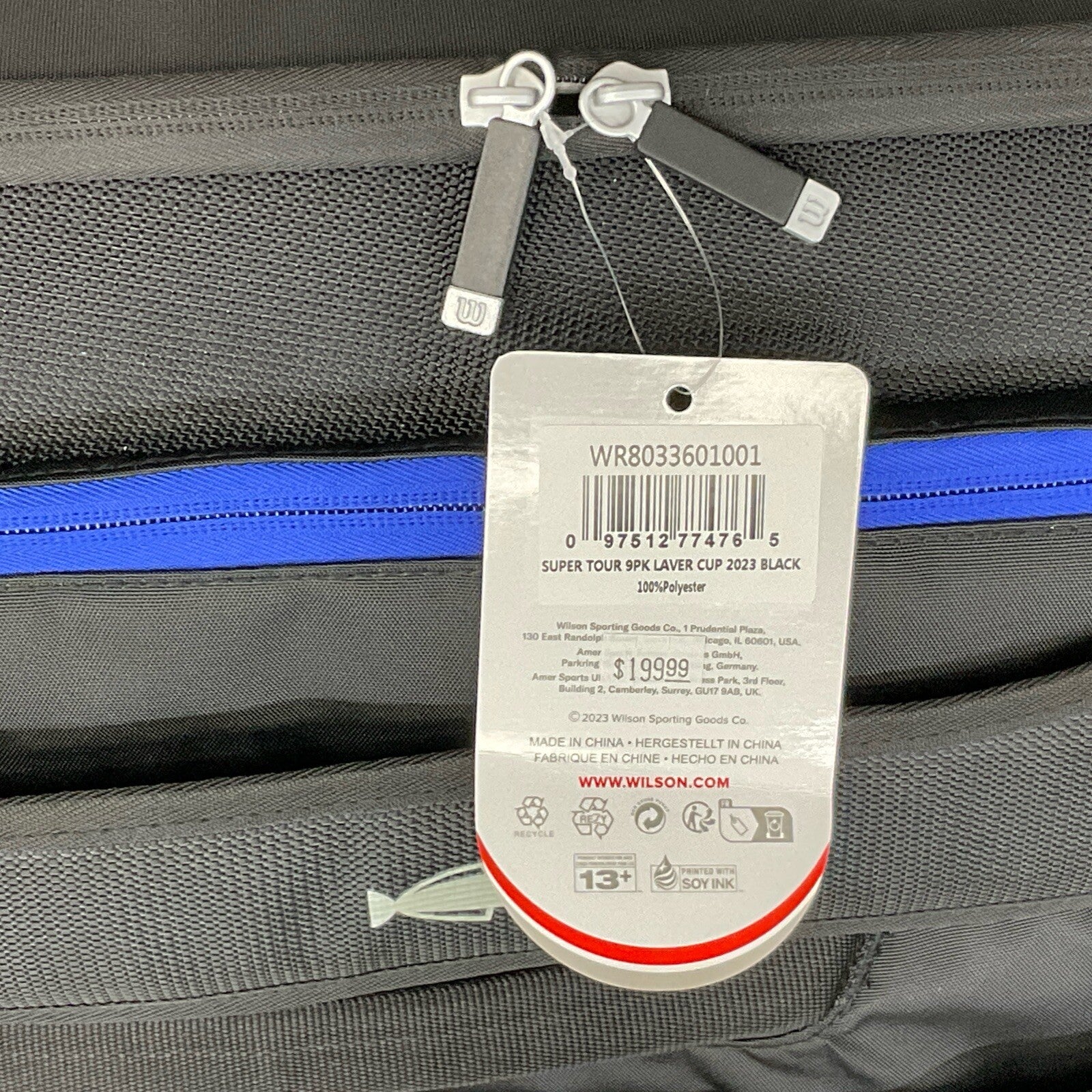 Crafted with high-quality materials, this Wilson tennis bag is both durable and stylish. It features multiple compartments to keep your rackets and other items organized and protected. The adjustable shoulder strap allows for comfortable carrying, making it easy to transport your equipment to and from the court. Invest in the Wilson Super Tour 9PK Laver Cup 2023 Black tennis bag and elevate your game today.